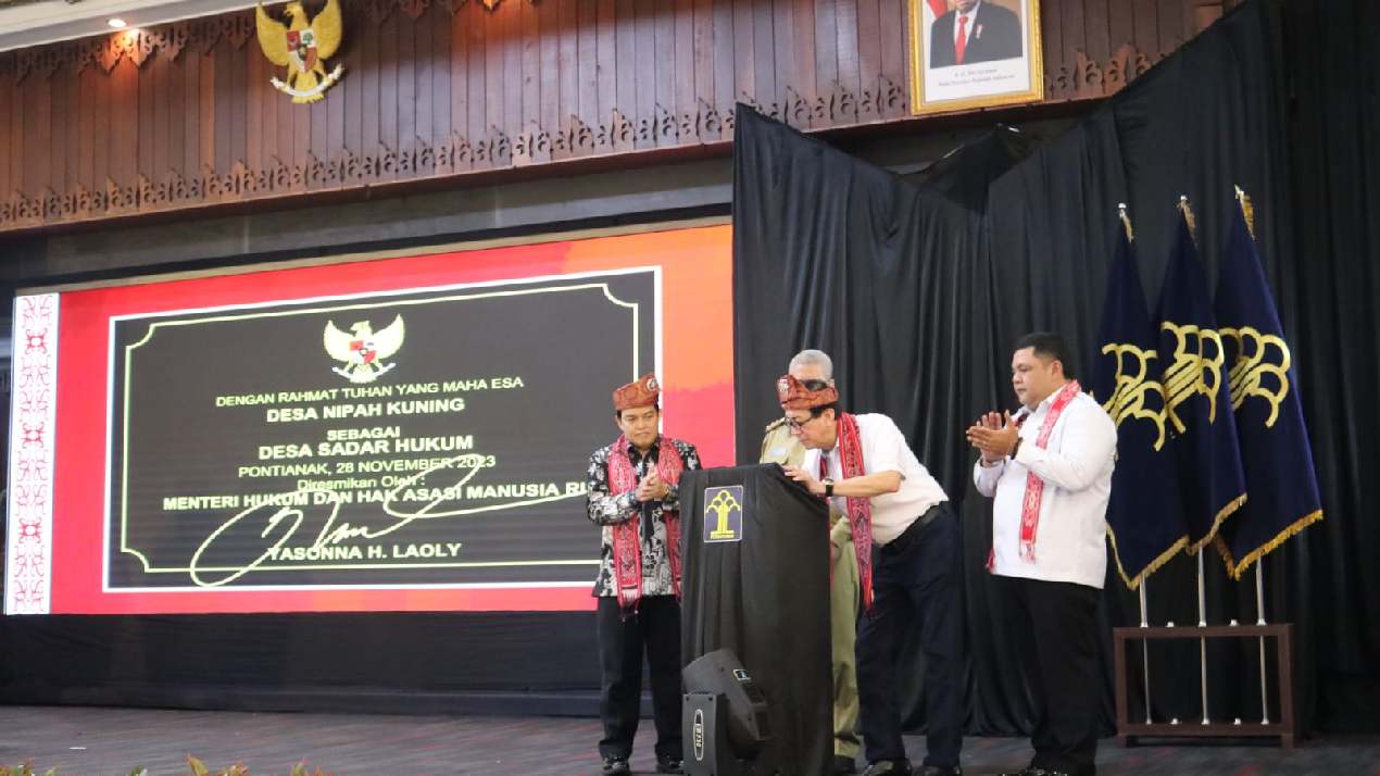Pada Selasa (28/11/2023), Kementerian Hukum dan HAM melalui Badan Pembinaan Hukum Nasional (BPHN) meresmikan 61 Desa/Kelurahan Sadar Hukum di Provinsi Kalimantan Barat. Menteri Hukum dan HAM Yasonna H. Laoly mengungkapkan bahwa penetapan desa/kelurahan sadar hukum ini merupakan upaya bersama untuk menguatkan keberadaan Indonesia sebagai negara hukum.