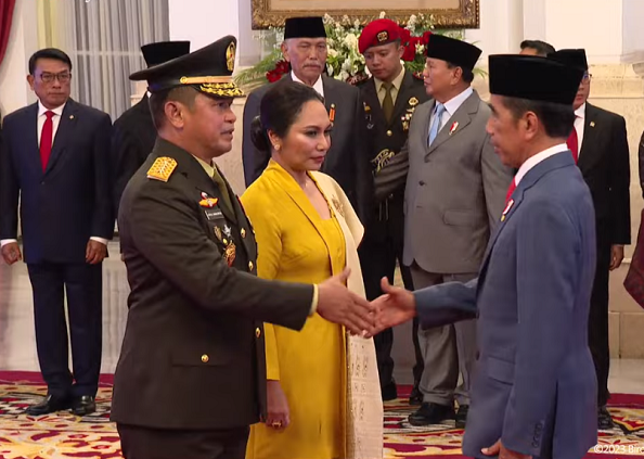 lognews.co.id, Jakarat - Presiden Joko Widodo (Jokowi) melantik Kepala Staf TNI AD (KSAD) Jendral Maruli Simanjuntak di Istana Negara, Rabu (29/11/2023). Maruli mengisi posisi yang ditinggalkan Jendral Agus Subiyanto yang dilantik Presiden menjadi Panglima TNI.