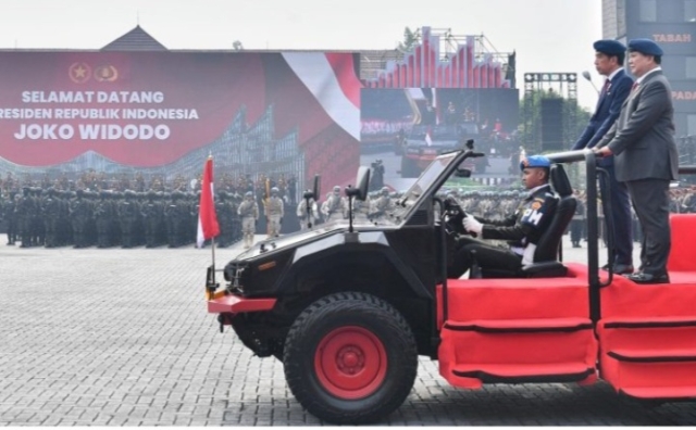 Setelah penyambutan, Presiden Jokowi menaiki kendaraan taktis Rantis Maung menuju Lapangan Apel, diiringi drumband Taruna Akademi Kepolisian (Akpol) hingga tiba di mimbar kehormatan.