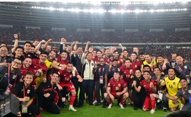 Usai pertandingan, Presiden Prabowo tampak turun ke lapangan untuk memberikan ucapan selamat secara langsung kepada timnas Indonesia