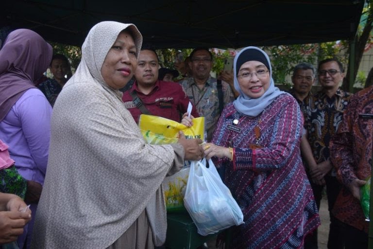 Seorang warga, Jaswati, menyampaikan kegembiraannya karena dapat membeli paket sembako dengan harga lebih terjangkau, dibandingkan dengan harga pasar yang lebih tinggi. (AS Saeful Husna untuk Batang Indonesia)