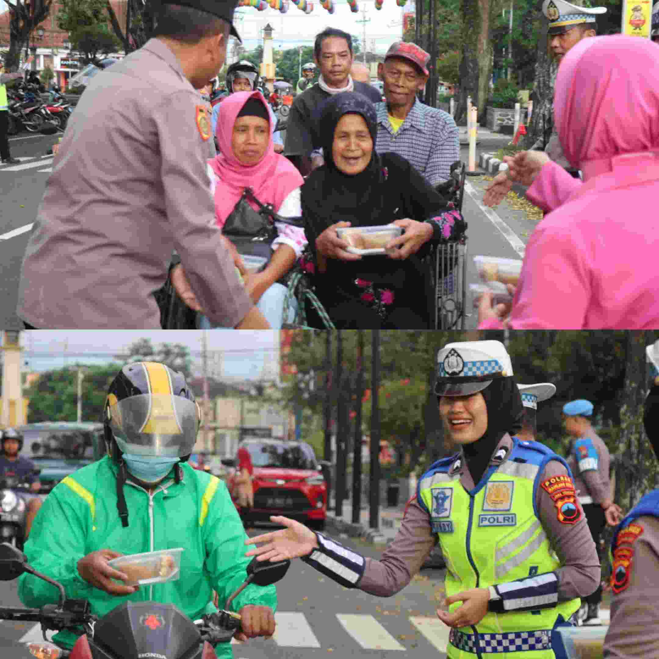 lognews.co.id, Magelang - Polres Magelang Kota Polda Jateng – Menyambut Bulan Suci Ramadhan 1445 Hijriah, Satlantas dan Bhayangkari Cabang Polres Magelang Kota membagikan 500 tajil kepada pejalan kaki maupun penggendara sepeda motor serta supir angkot di jalan raya alun-alun Selatan depan Polres Magelang Kota. Rabu (13/3/2024)