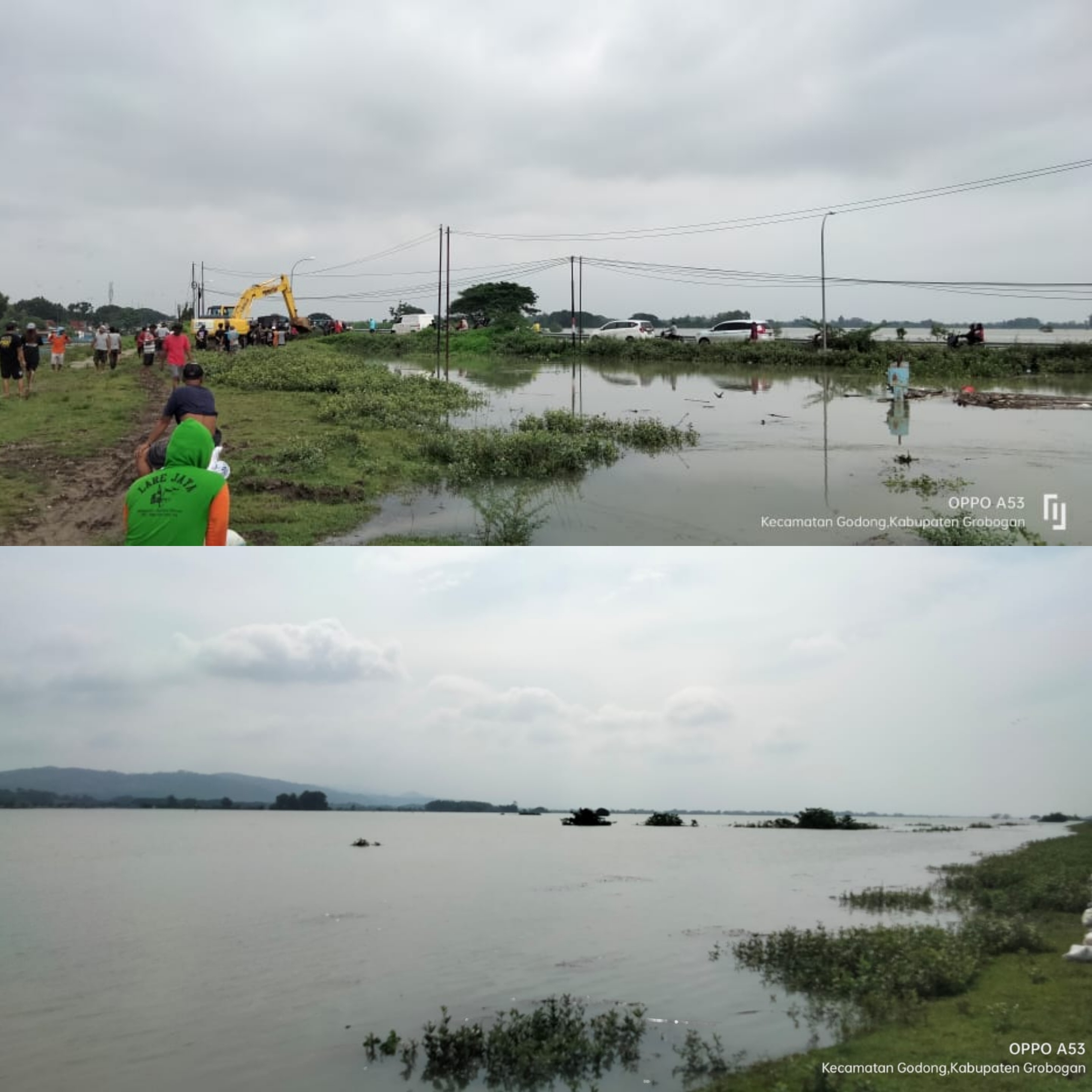 Hingga saat ini, Desa Klampok, Kecamatan Godong, Kabupaten Grobogan, dalam status siaga banjir akibat curah hujan yang berlebihan sejak hari Sabtu lalu, yang mengakibatkan debit air Sungai Lusi meningkat sehingga resiko banjir tinggi dan membuat warga dihantui kecemasan.
