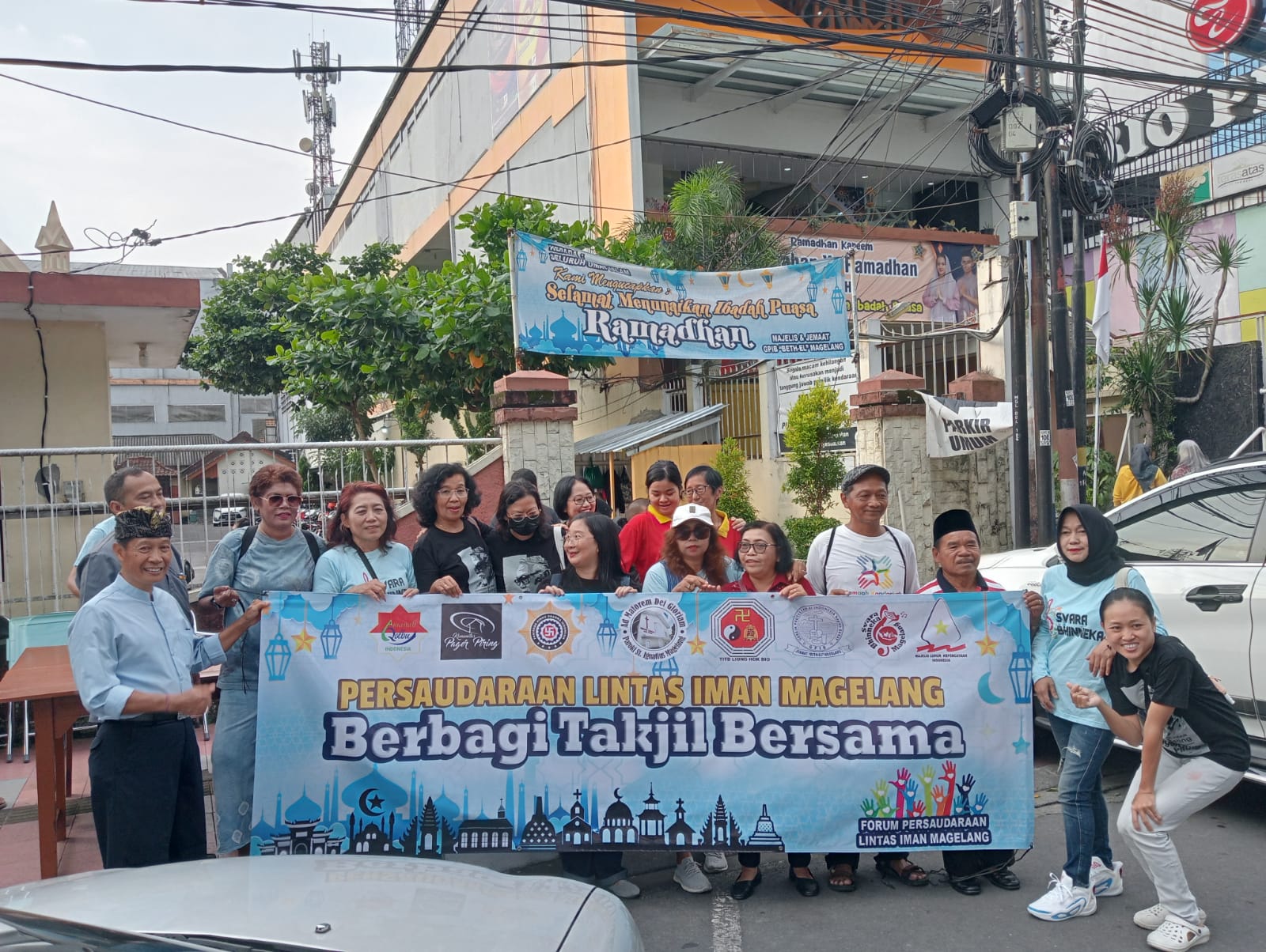 lognews.co.id, Kota Magelang - Dalam meningkatkan kembali toleransi dan perdamaian seluruh umat beragama yang ada di kota magelang, dengan Kegiatan Berbagi Takjil bagi umat muslim yang tengah menjalankan ibadah puasa yang diinisiasi oleh Svara Bhineka, merupakan paduan suara lintas iman yang ada di kota magelang, mengajak serta seluruh perwakilan umat yang ada di seputar kota magelang seperti : Majelis GPIB, Gereja St Ignatiis, Yayasan TITD Liong Hok Bio, PHDI(Parisada Hindu Dhafma Indonesia), MLKI(Majelis Luhur Kepercayaan Indonesia), Komunitas Pager Piring dan YAQINDO (Yayasan Amanah Qolbu Indonesia).
