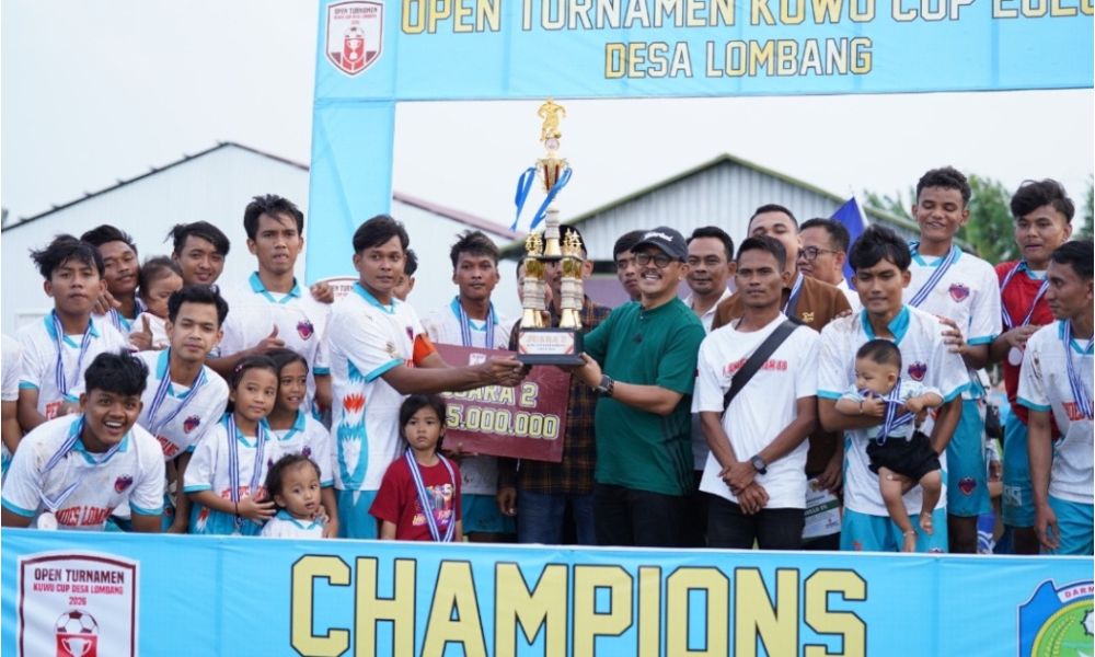 lognews.co.id, Indramayu – Pemerintah Desa Desa Lombang, Juntinyuat, Indramayu menggelar Open Tournament Kuwu Cup 2026 yang mencapai puncak pertandingan pada laga final di Lapangan Sepak Bola Bima Seraya Lombang, Rabu (4/2/26). Turnamen sepak bola ini menjadi ajang kompetisi olahraga sekaligus sarana mempererat silaturahmi masyarakat lintas desa di Kecamatan Juntinyuat.