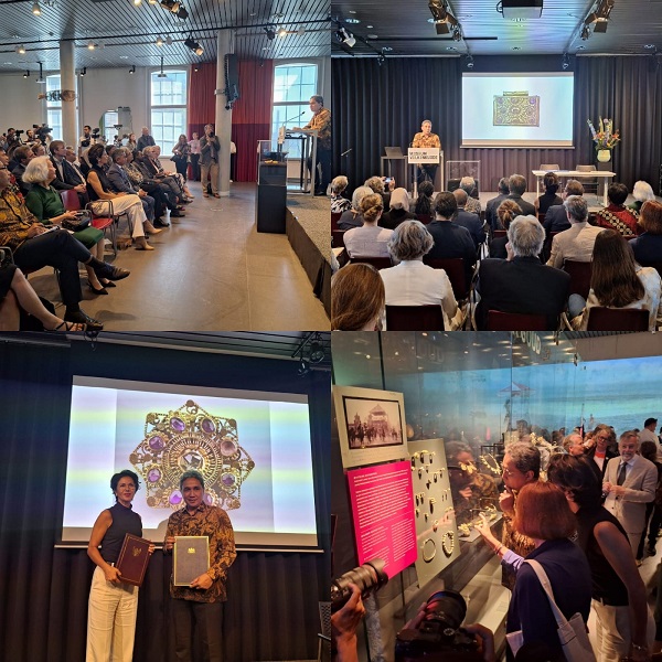 Penyerahan koleksi benda bersejarah ini diterima secara langsung oleh Direktur Jenderal Kebudayaan, Kemendikbudristek, Hilmar Farid, dari Menteri Muda bidang Pendidikan, Kebudayaan, dan Ilmu Pengetahuan, Kerajaan Belanda, Gunay Uslu, di Museum Volkenkunde, Leiden, Belanda, pada Senin (10/7).
