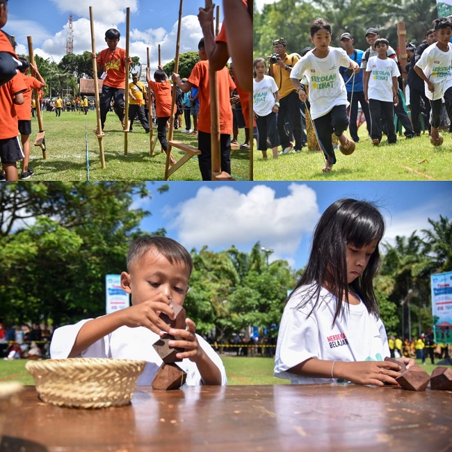 lognews.co.id, Banyuwangi - Sebagai upaya menyemarakkan Hari Anak Nasional tahun 2023, Kementerian Pendidikan, Kebudayaan, Riset dan Teknologi (Kemendikbudristek) berkolaborasi dengan Pemerintah Kabupaten Banyuwangi menggelar Festival Permainan Tradisional sebagai salah satu wujud implementasi Gerakan Sekolah Sehat (GSS) yang menjadi kebijakan Kemendikbudristek untuk meningkatkan kesehatan peserta didik.