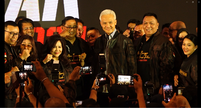 lognews.co.id, Jakarta -  Mengenakan baju putih garis hitam, Ganjar hadiri deklarasi dukungan kepadanya untuk menjadi Pesiden RI di pemilu 2024, dengan tema acara Keluarga Besar Putra Putri Polri Dukung Ganjar Presiden 2024 “aku bangga jadi anak Polisi, dari asrama menuju istana”.