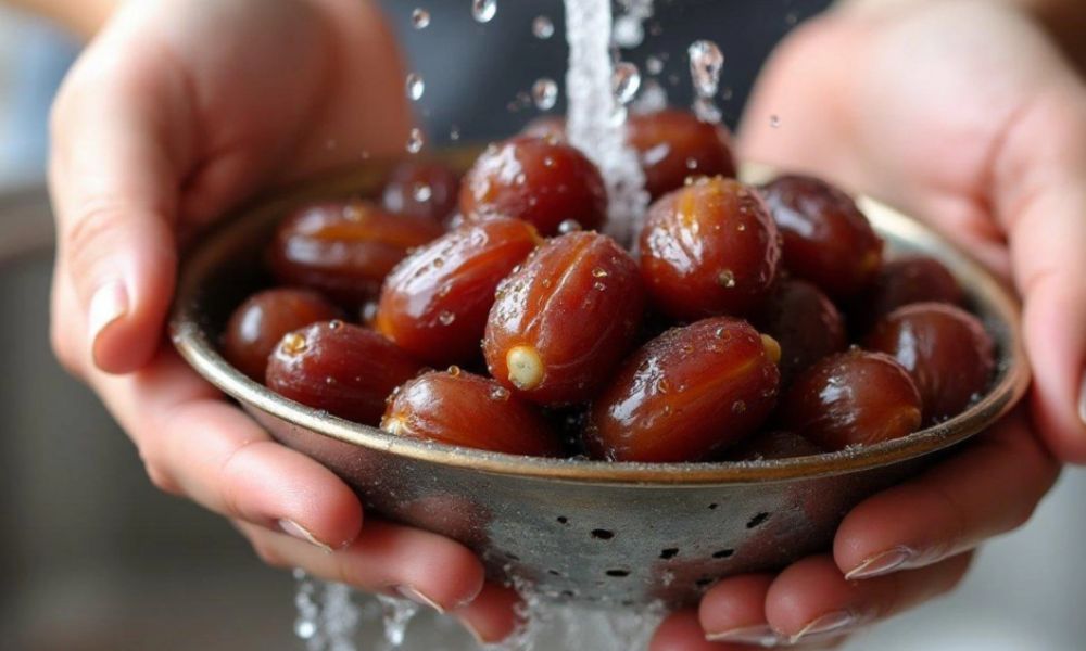 Kurma sebaiknya dicuci sebelum dikonsumsi, terutama untuk mengurangi potensi residu atau kontaminasi. Perendaman singkat dapat menjadi opsi tambahan untuk meningkatkan kebersihan dan tekstur.