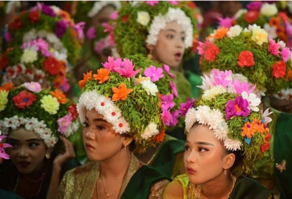 Bunga kenanga segar di kepala gadis melambangkan kesucian jiwa sinom (muda):